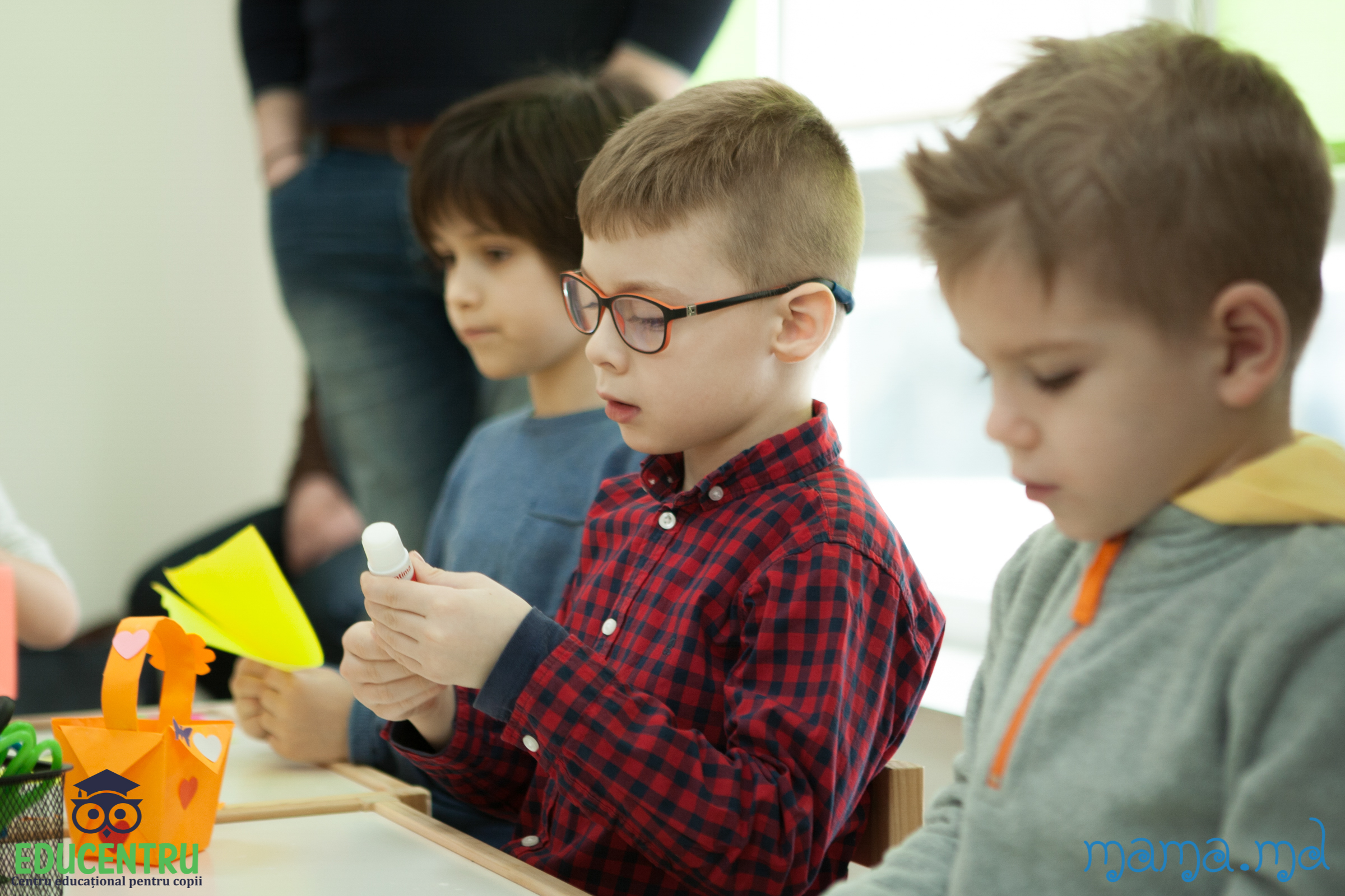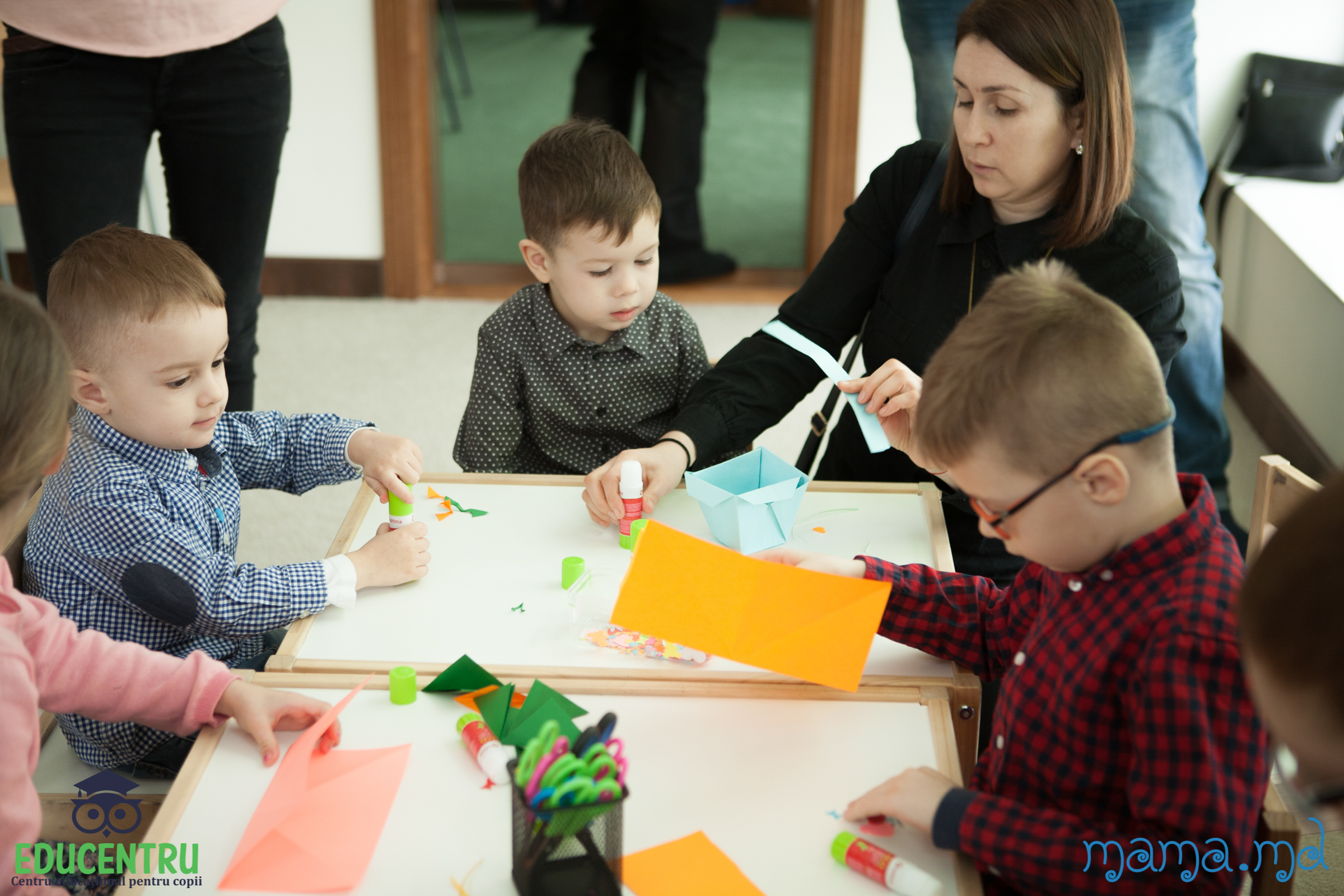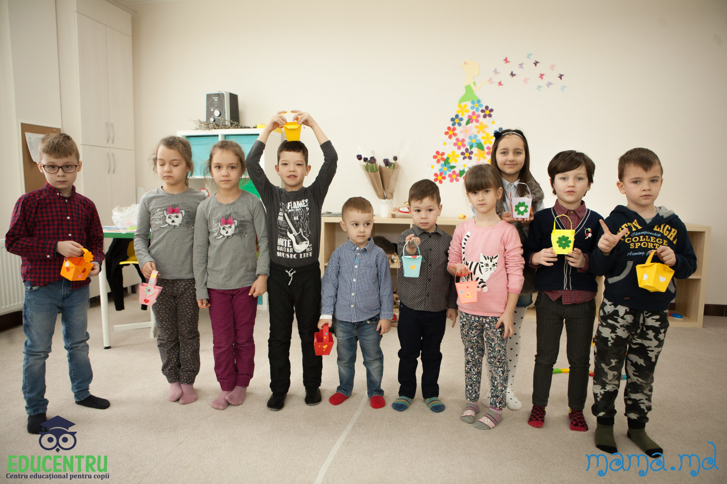 In sala 1 s-a desfasurat atelierul de creatie in tehnica origami. Copiii au creat un cosulet cu flori, decor necesar in fiecare casa, in prag de sarbatori Pascale.