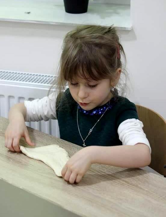 Plini de entuziasm, copiii au frămîntat piinica, după care au pus-o la copt.