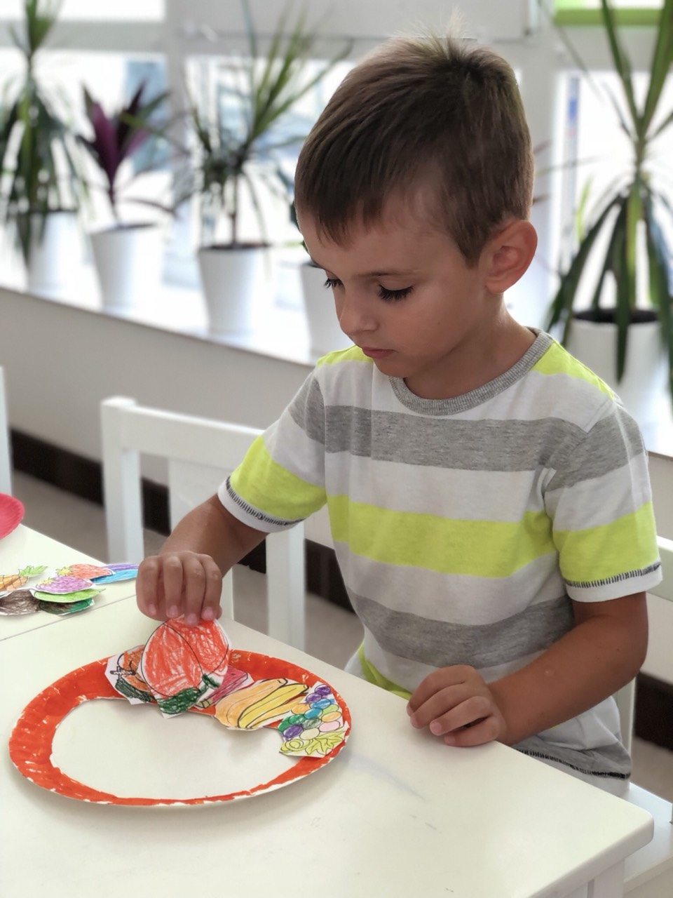 Coșul cu fructe: o activitate la care copiii s-au implicat cu mult drag, și cu o toată sîrguința. Am muncit 2 zile la pictat coșul, la colorat fiecare fruct în parte, la decupat, la amenajat fructele în coș. Rezultatul e unul frumos!
