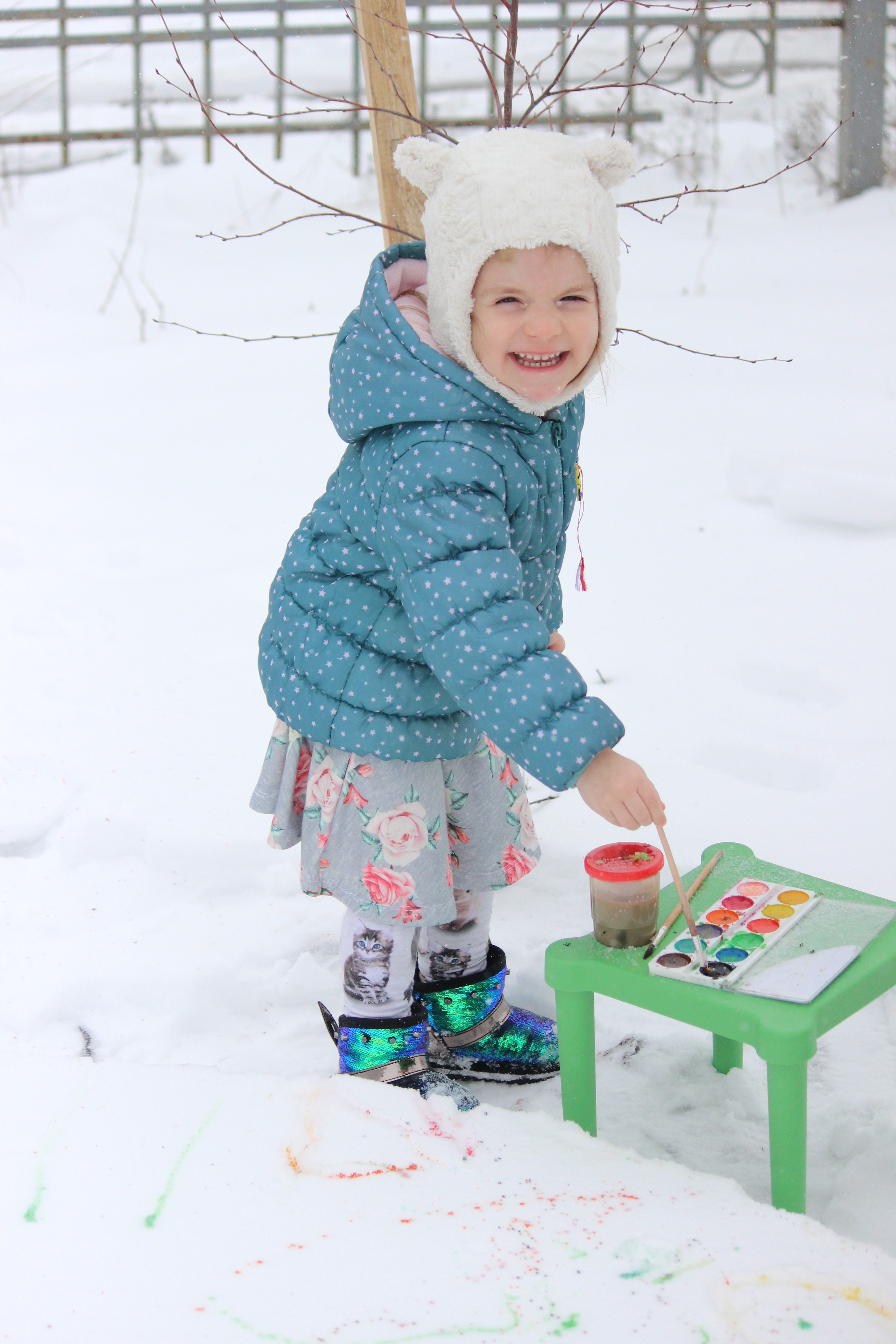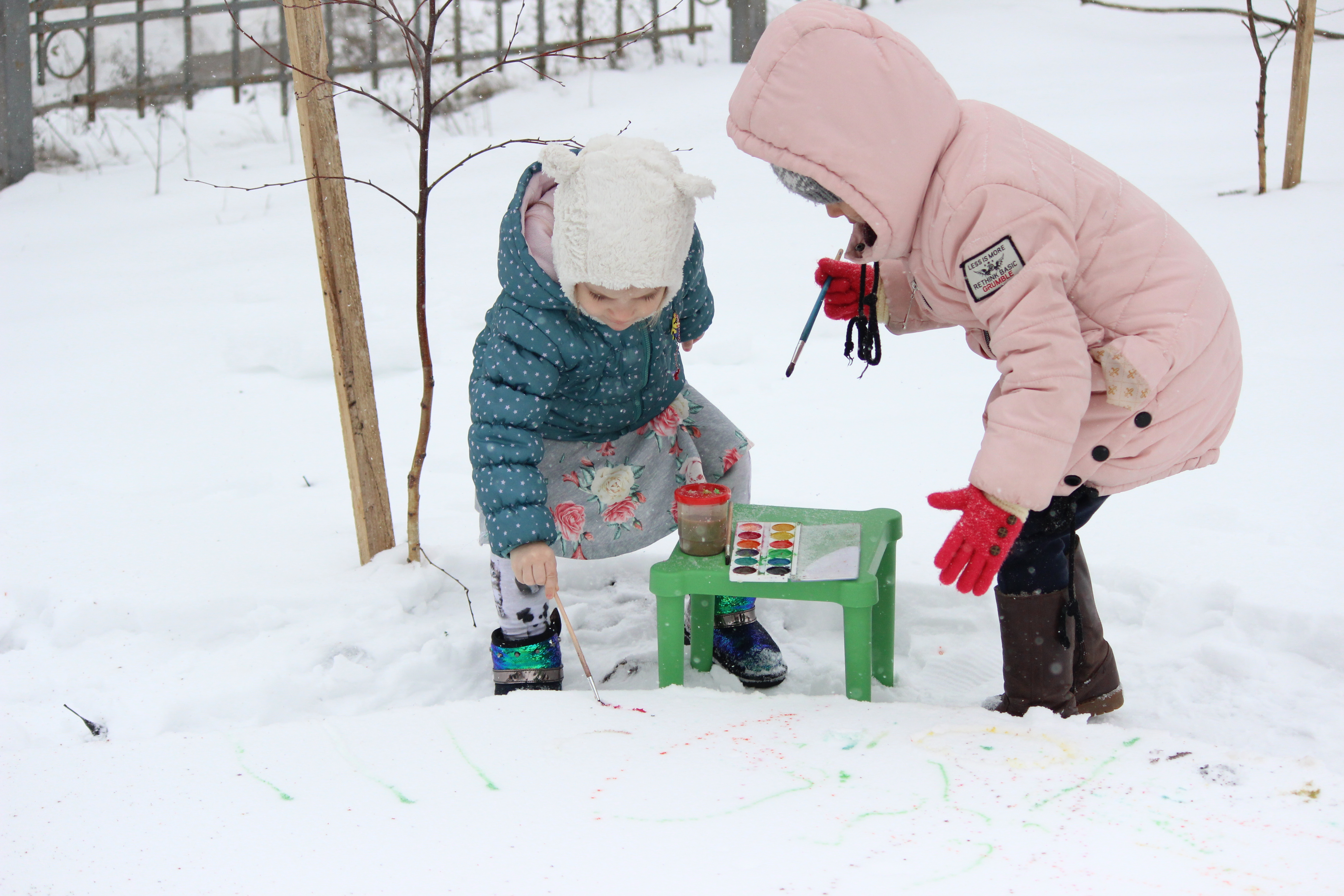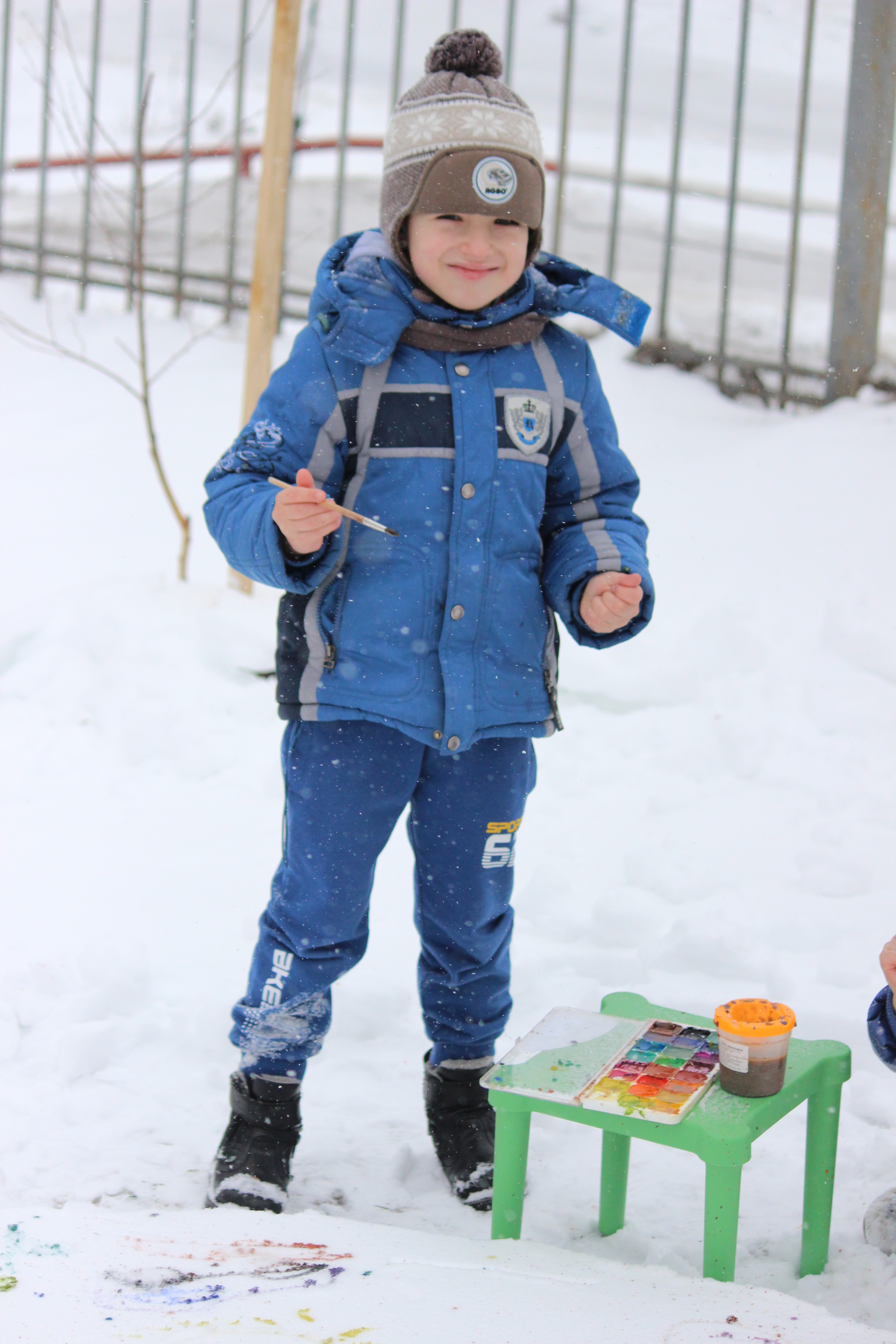 Tot ce aveți nevoie pentru un tablou pe zăpadă, sunt cîteva culori, periuțe, dispoziție bună și mulți copii veseli. Este important ca, micutilor să le placă nu doar rezultatul muncii lor, dar și procesul de creație în sine.
