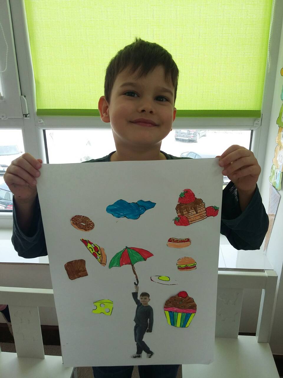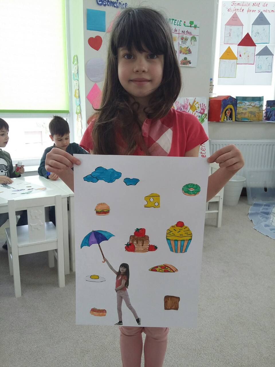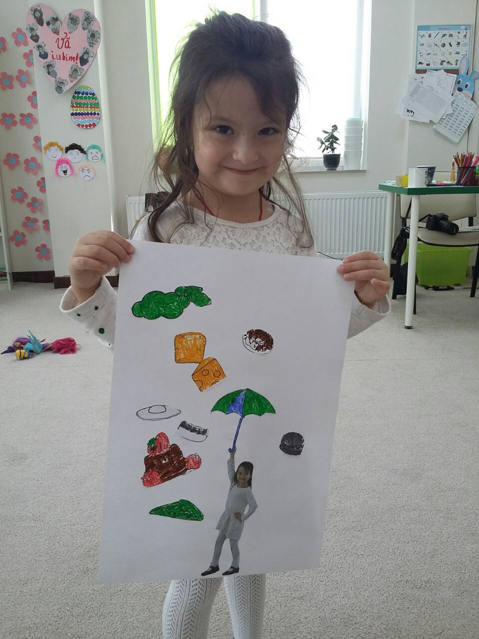 Fiecare a meșterit un oușor de Paște și a pus la bătaie fantezia. După ce am citit și am vizionat povestioara "Cloudy with a chance of meatballs", toți copilașii au relatat, au desenat și au pus în aplicare ideea lor- "Cu ce ar dori ei, să plouă în lumea lor fantastică".